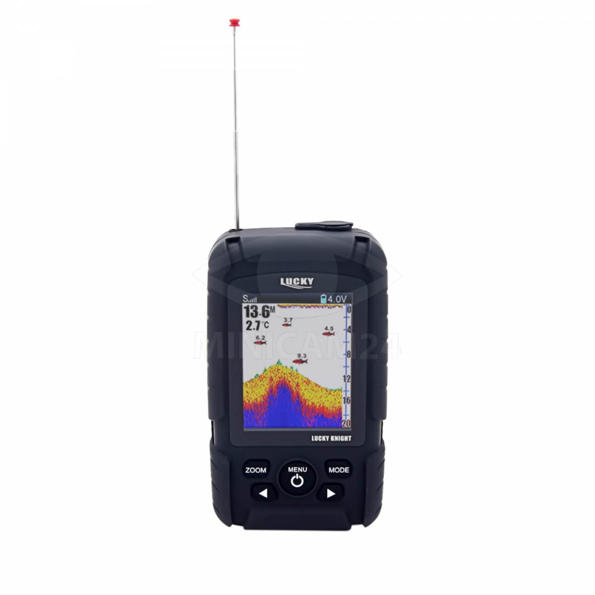 Электронный прибор, предназначенный для рыбаков, туристов. С его помощью можно легко определить глубину водоема, рельеф дна, а также наличие рыбы на данном участке. Эхолот имеет беспроводную конструкцию, что позволяет использовать его при любой температуре, в том числе и на зимней рыбалке, а также с лодки, пристани или просто с берега. Датчик можно забрасывать на любое расстояние. предварительно привязав его к леске. Полученная информация отображается на дисплее размером 2,5 дюйма (42х48 мм). Прибор подойдет для начинающих и опытных рыболовов, очень простой в работе. Не требует дополнительных настроек.