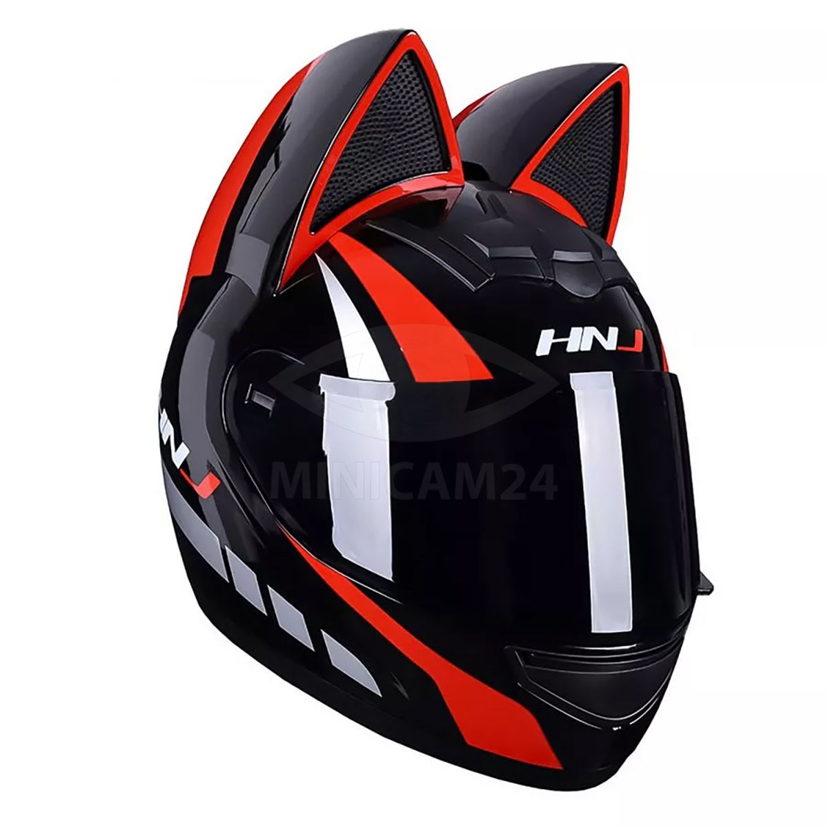 Мотошлем HNJ с кошачьими ушками красный, размер S