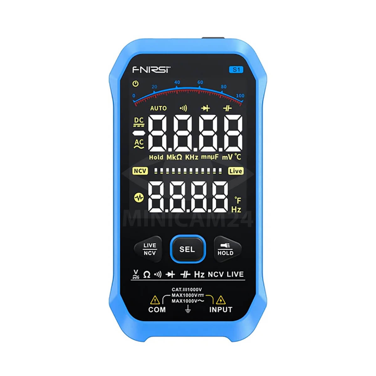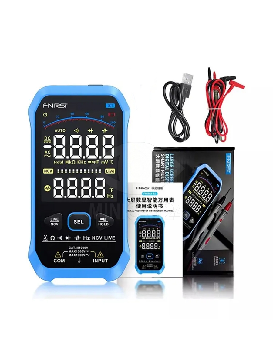 Портативный цифровой мультиметр FNIRSI S1 представляет собой инструмент для точных измерений в различных условиях. Он обеспечивает широкий диапазон измерений, включая напряжение AC/DC до 1000 В, сопротивление от 0 Ом до 100 МОм, ёмкость от 0 нФ до 10 мФ, частоту и температуру. Пользователь может выбирать между автоматическим и ручным выбором пределов измерений.