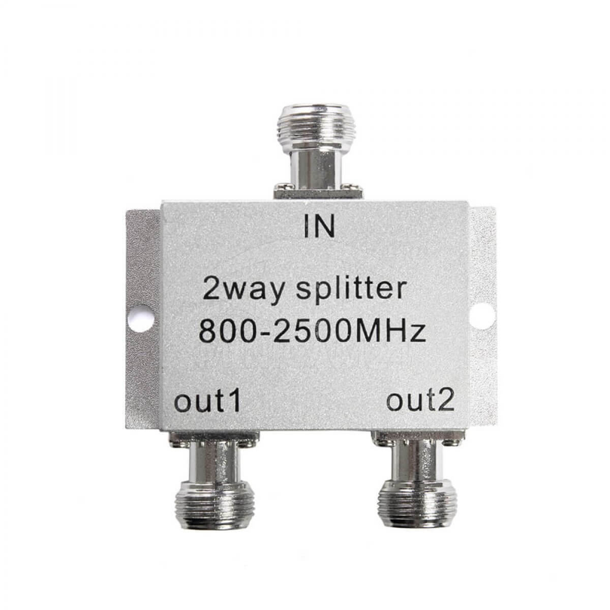Высокочастотный делитель сигнала (разветвитель) применяется в основном в системах усиления сигналов сотовой связи. Устройство работает в диапазоне частот от 800 до 2500 МГц и рассчитано на мощность подводимого сигнала до 10 Вт. Благодаря наличию микрочипа, потери на разделение сигналов не превышают -0.3 дБ и развязка между выходами не хуже 20 дБ. Делитель оборудован входным и двумя выходными высокочастотными разъемами типа N-female. Волновое сопротивление 50 Ом.